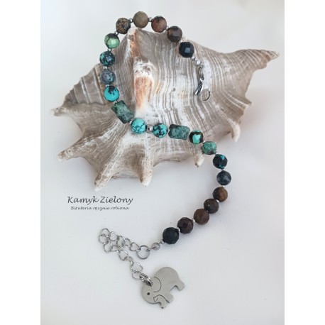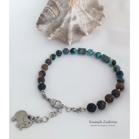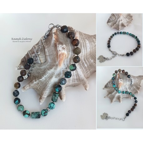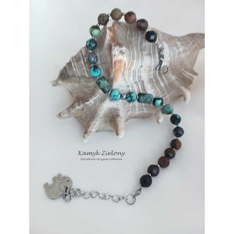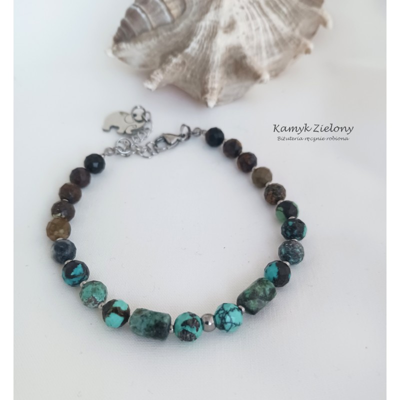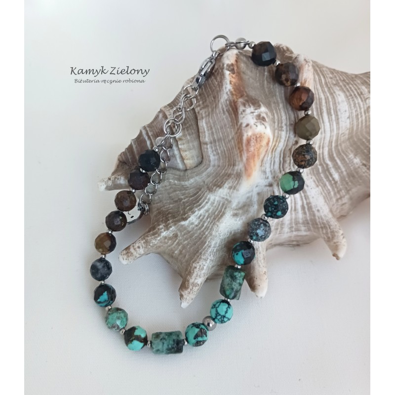 Ręcznie wykonana bransoletka z kamieni naturalnego turkusu afrykańskiego w brązowo-turkusowej kolorystyce