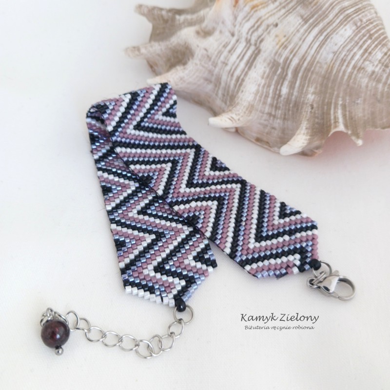 | Skład | szklane koraliki Miyuki, stal chirurgiczna, granat |