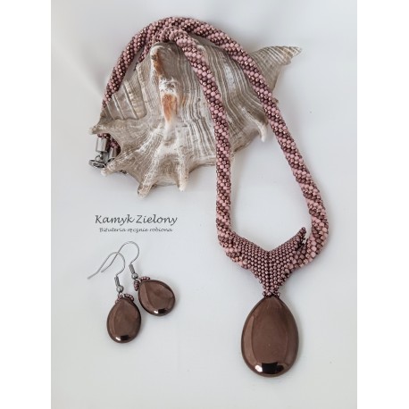 Komplet ręcznie wykonanej biżuterii z koralików Toho oraz hematytu