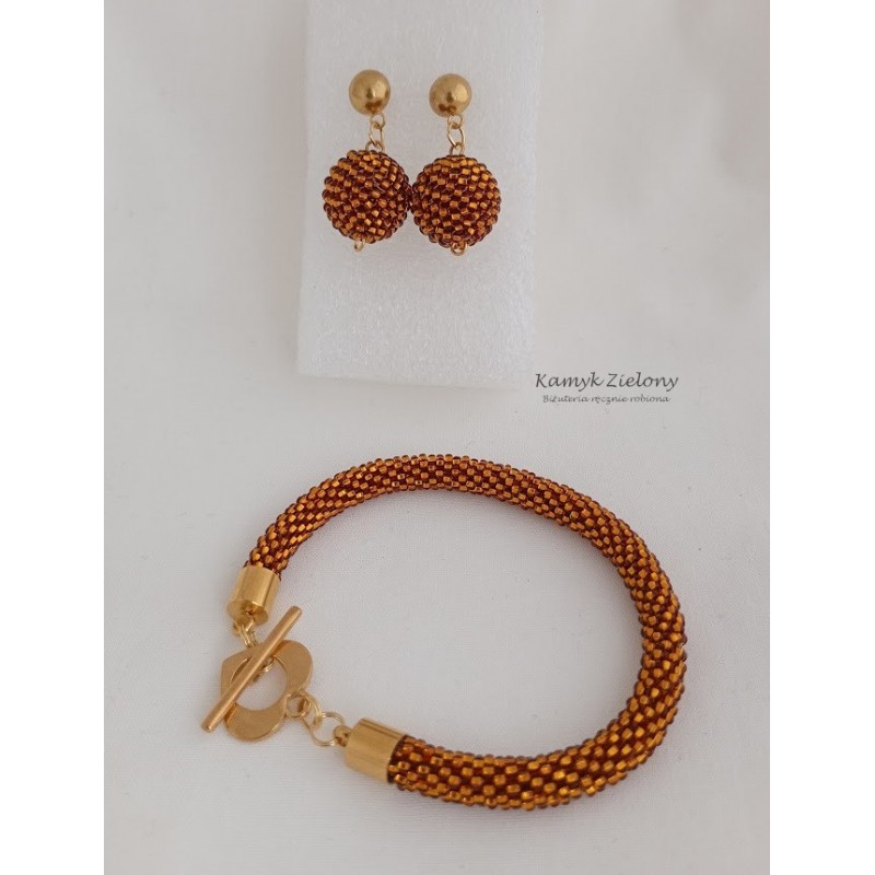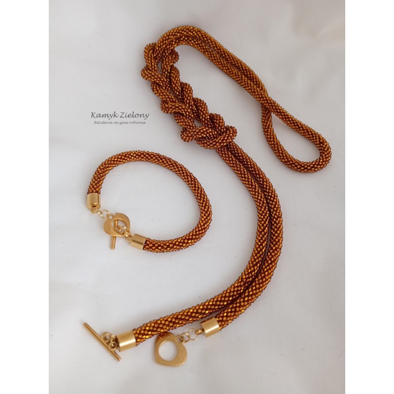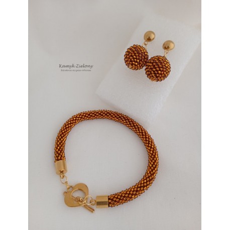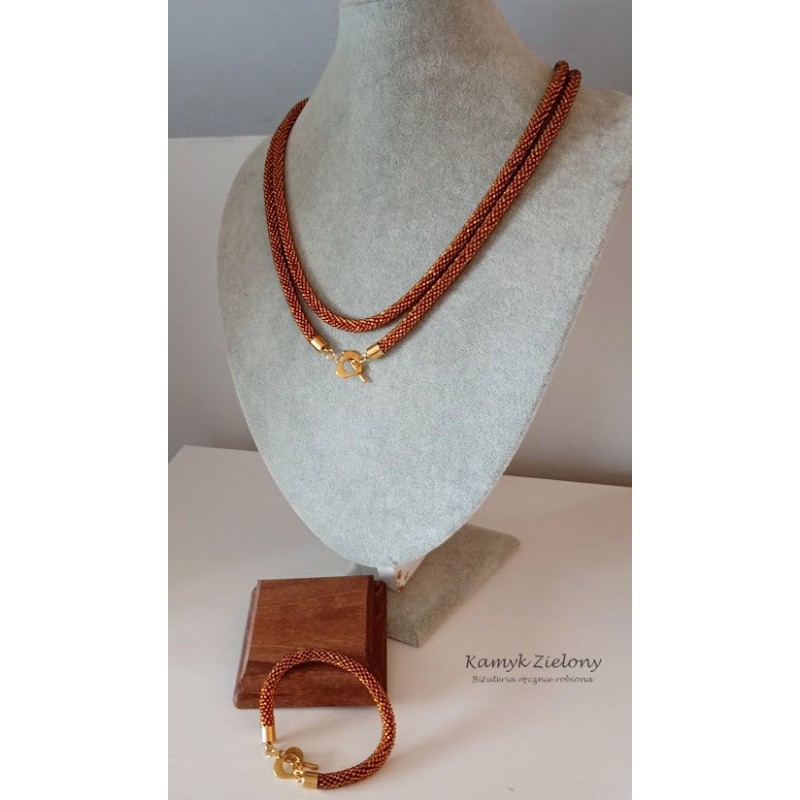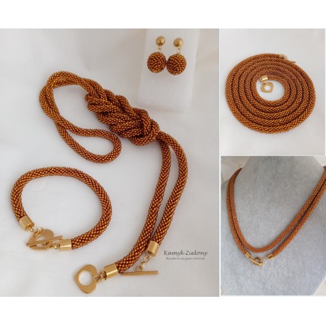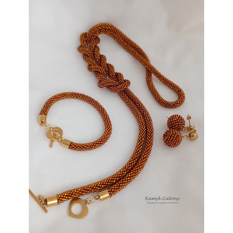 Ręcznie wykonany zestaw koralikowej biżuterii w kolorze bursztynowym