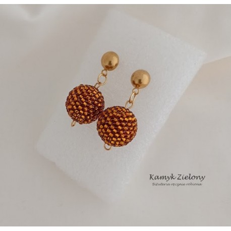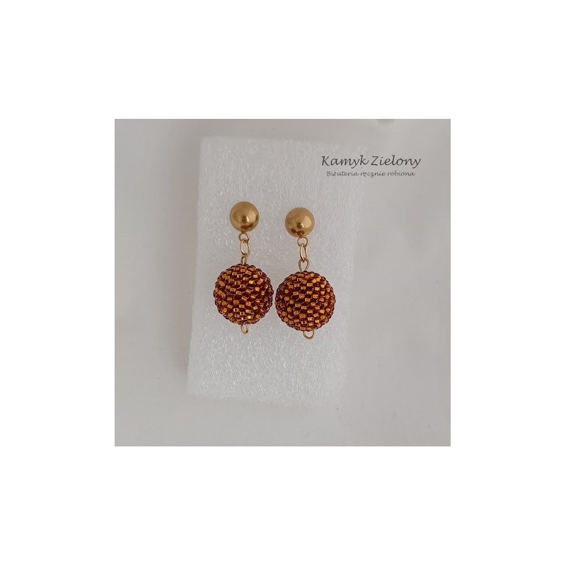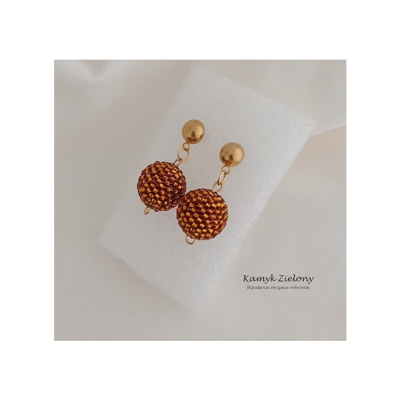 Kolczyki w formie koralikowych kulek zostały zawieszone na ozdobnych sztyftach.