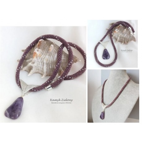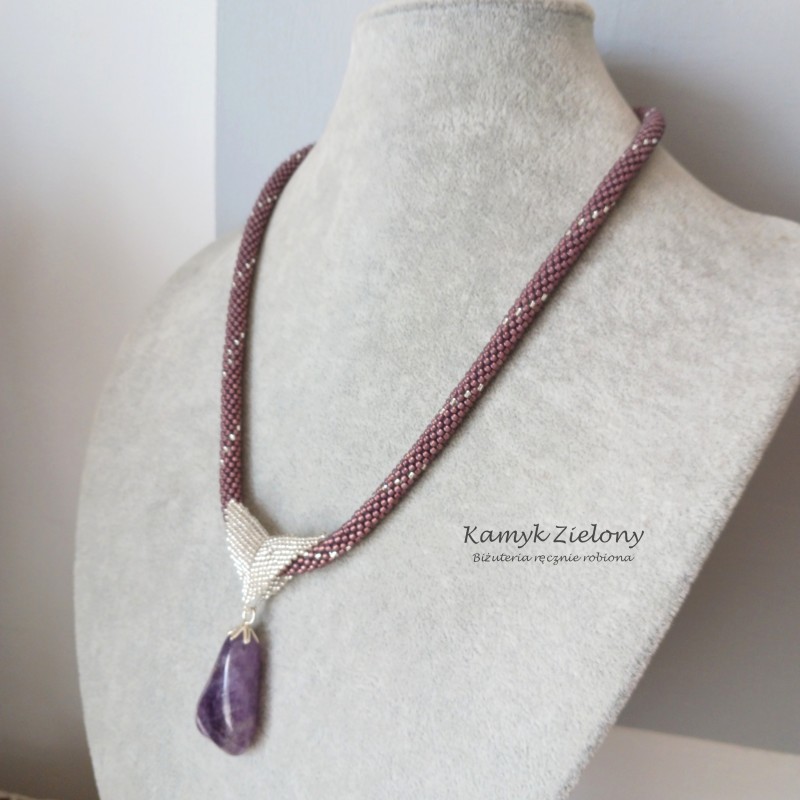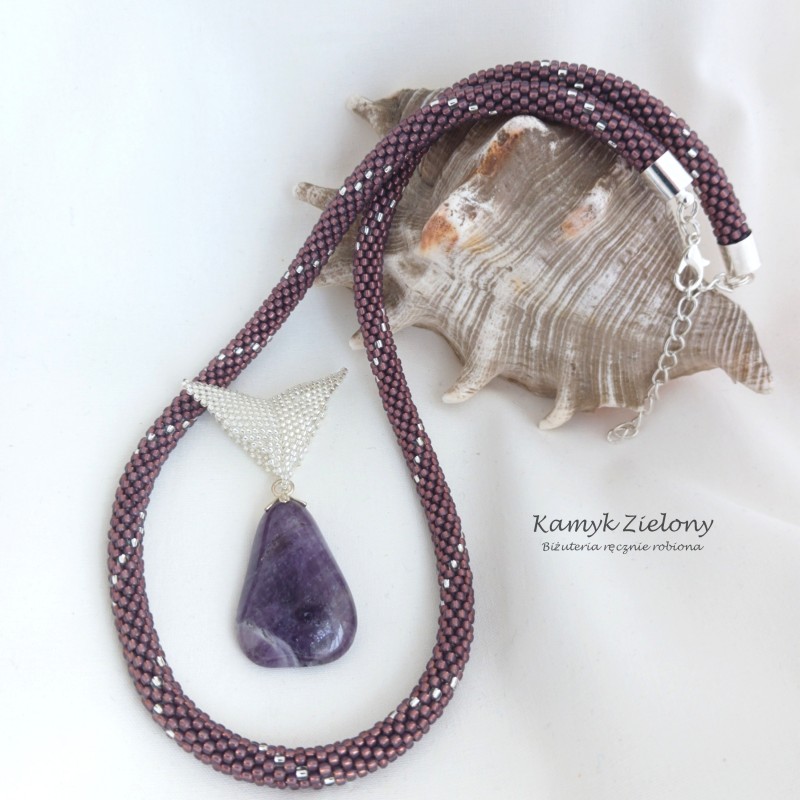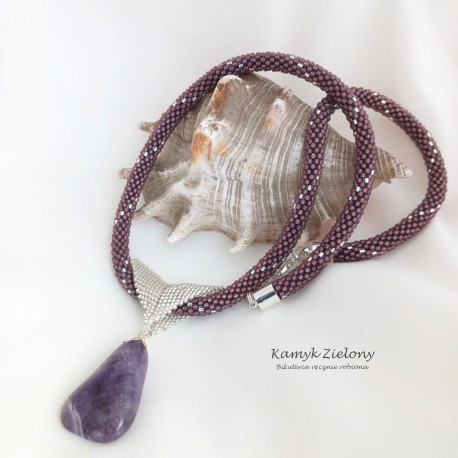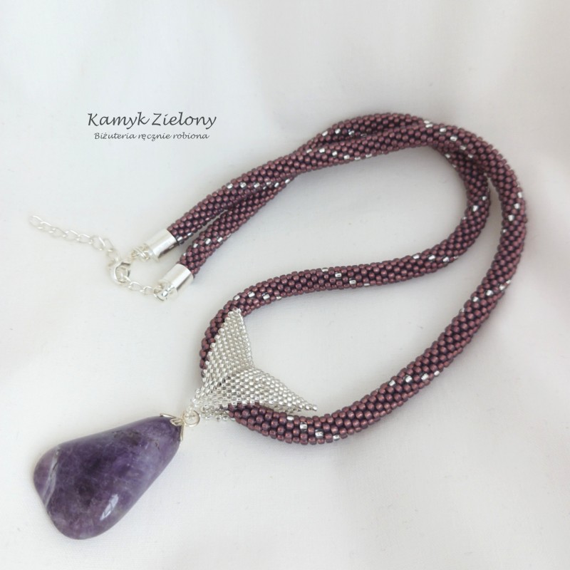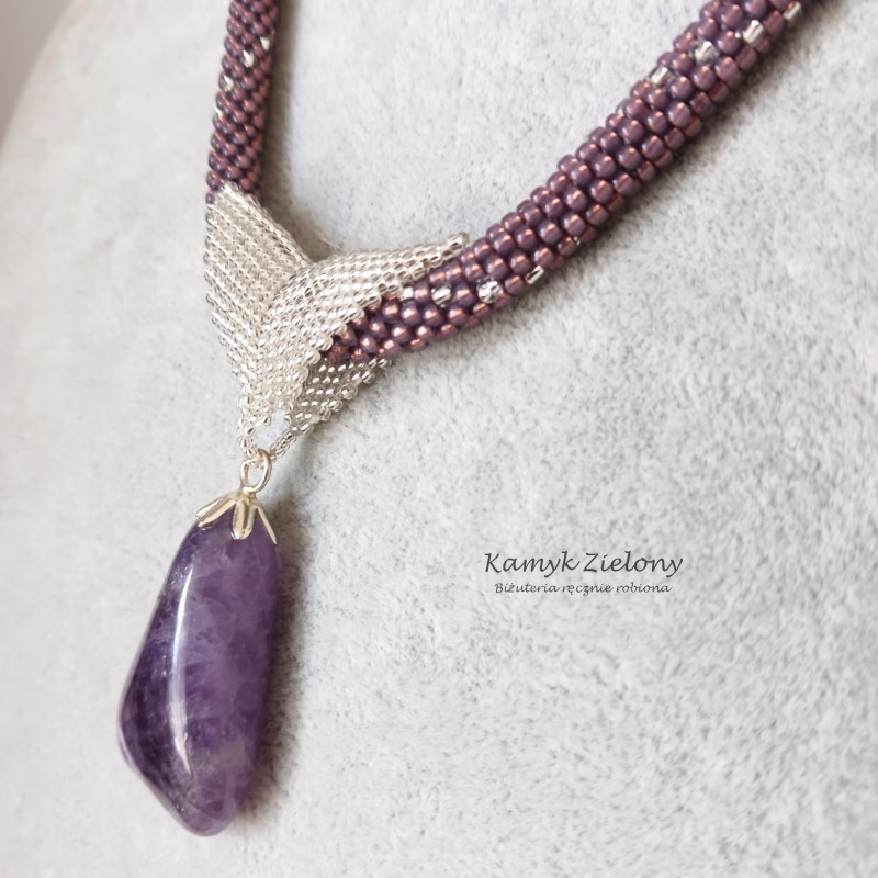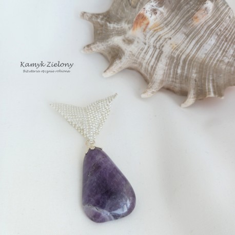 Ręcznie wykonany naszyjnik z koralików Toho, z zawieszką z ametystu