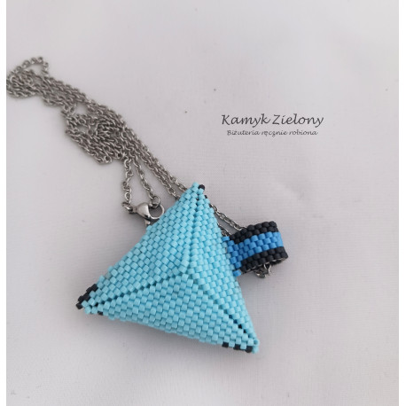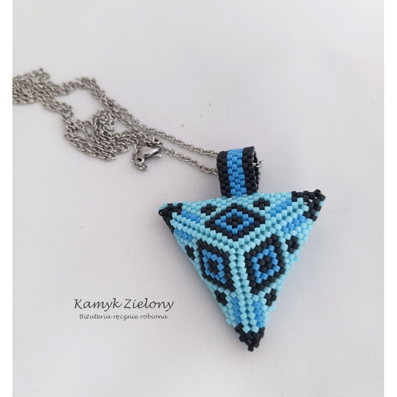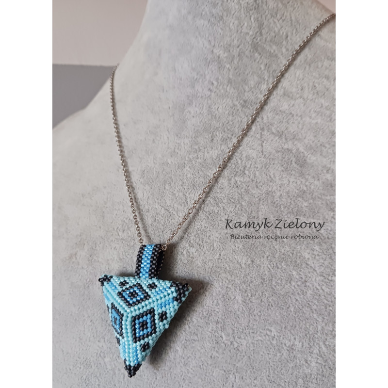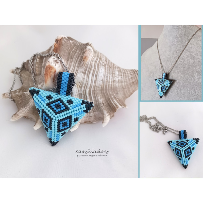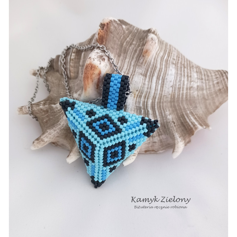 Zawieszka została uszyta z wysokiej jakości szklanych koralików Toho o cylindrycznym kształcie (Toho Treasure).